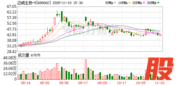 迈威生物是一家全产业链布局的创新型生物制药公司,专注于肿瘤和年龄相关疾病,涉及肿瘤、自身免疫、骨疾病、眼科、血液、感染等治疗领域,凭借国际领先的特色技术平台和研发创新能力,建立了丰富且具有竞争力的管线。业绩方面,2025年前三季度,公司实现营业收入5.66亿元,同比增长301.03%;归属于上市公司股东的净利润为亏损5.98亿元。